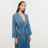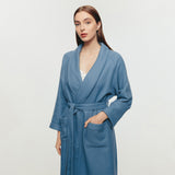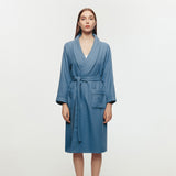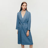 PROVENCE タオル生地 超長綿100% 吸水 バスローブ ピーコックブルー
